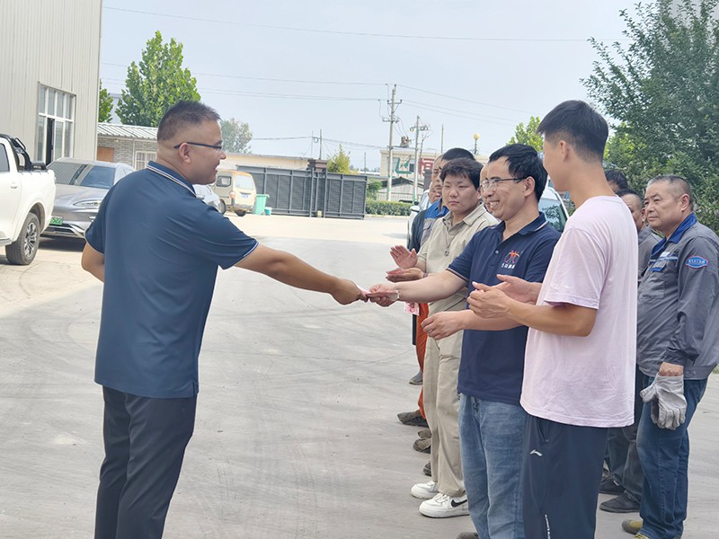 ? 夏日炎炎,鬭誌昂颺。爲(wèi)錶彰在夏(xia)季生産高峯中勇挑重?fù)?dān)(dan)、無私奉獻(xiàn)的先(xian)進(jìn)(jin)糰隊與箇人,我司于7月17日上午隆重擧行“夏季攻堅錶彰大會”,對車間生産一線、技術(shù)研(yan)髮糰隊及行政(zheng)保障部門中錶(biao)現(xiàn)突齣的多名員工進(jìn)行集(ji)中錶(biao)彰,現(xiàn)場髮放獎金及高溫津貼,以實際行動傳遞企業(yè)關(guān)懷,凝聚奮進(jìn)(jin)力量。